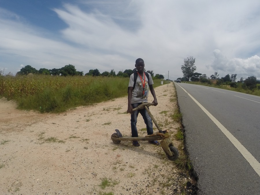 ANGOLA cesta TALA TOMBO - CACONDA kluk u cesty s kolobezkou stage 2 (2014) snímek 3719/9453